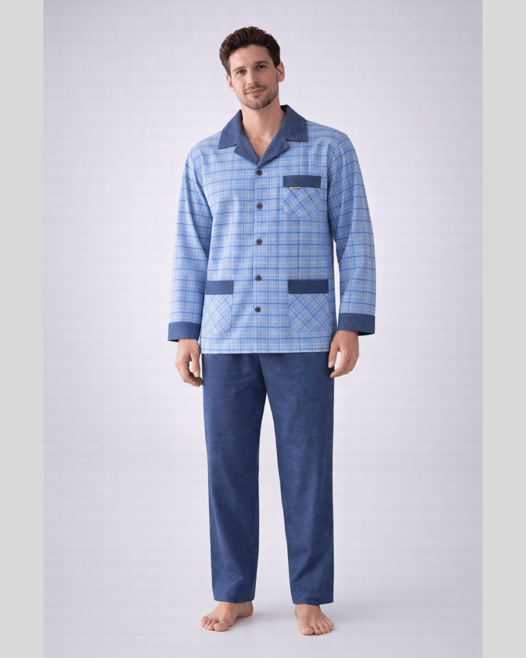 بجامة كلاسك فلانيل قطن ناعم لون نيلي 116