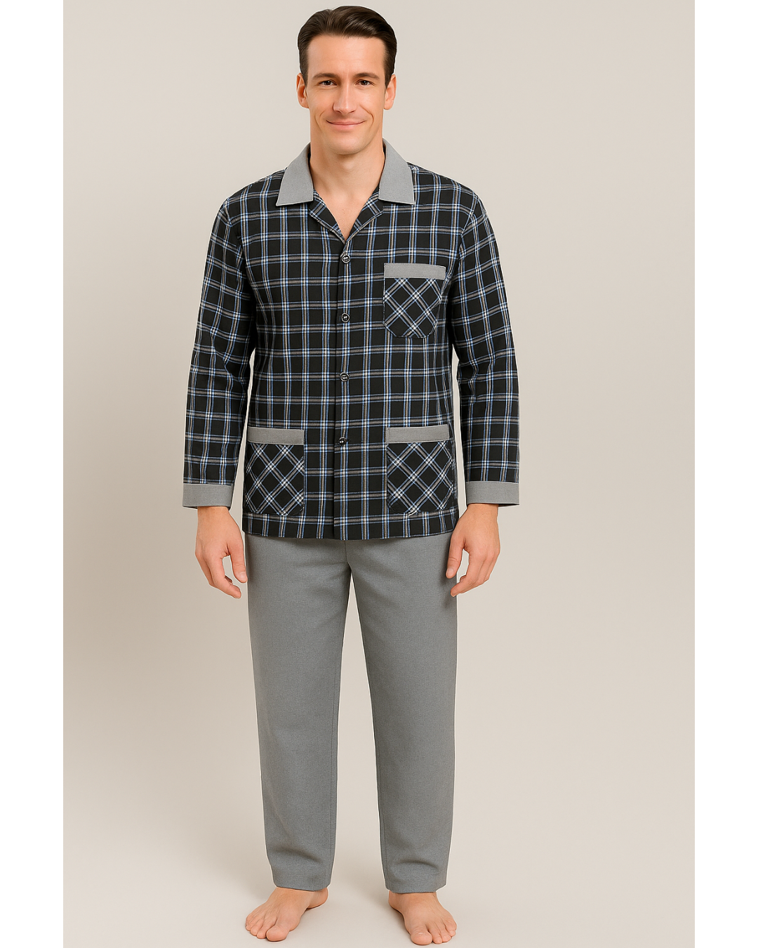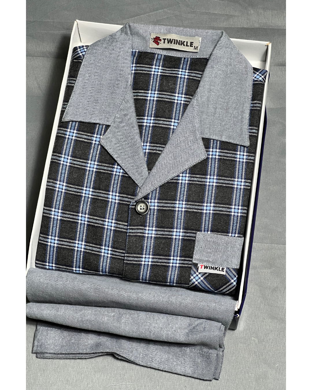 بجامة بيت شتائية كلاسيك فلانيل MODEL:105 لون رمادي