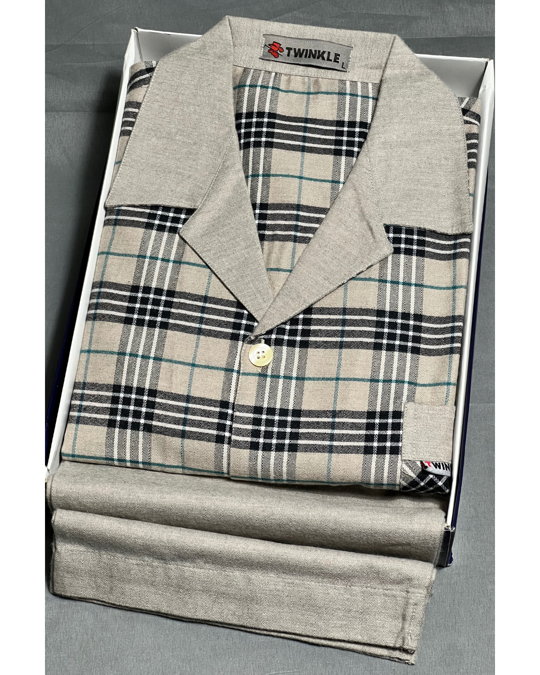 بجامة بيت شتائية كلاسيك فلانيل MODEL:37 لون بيج