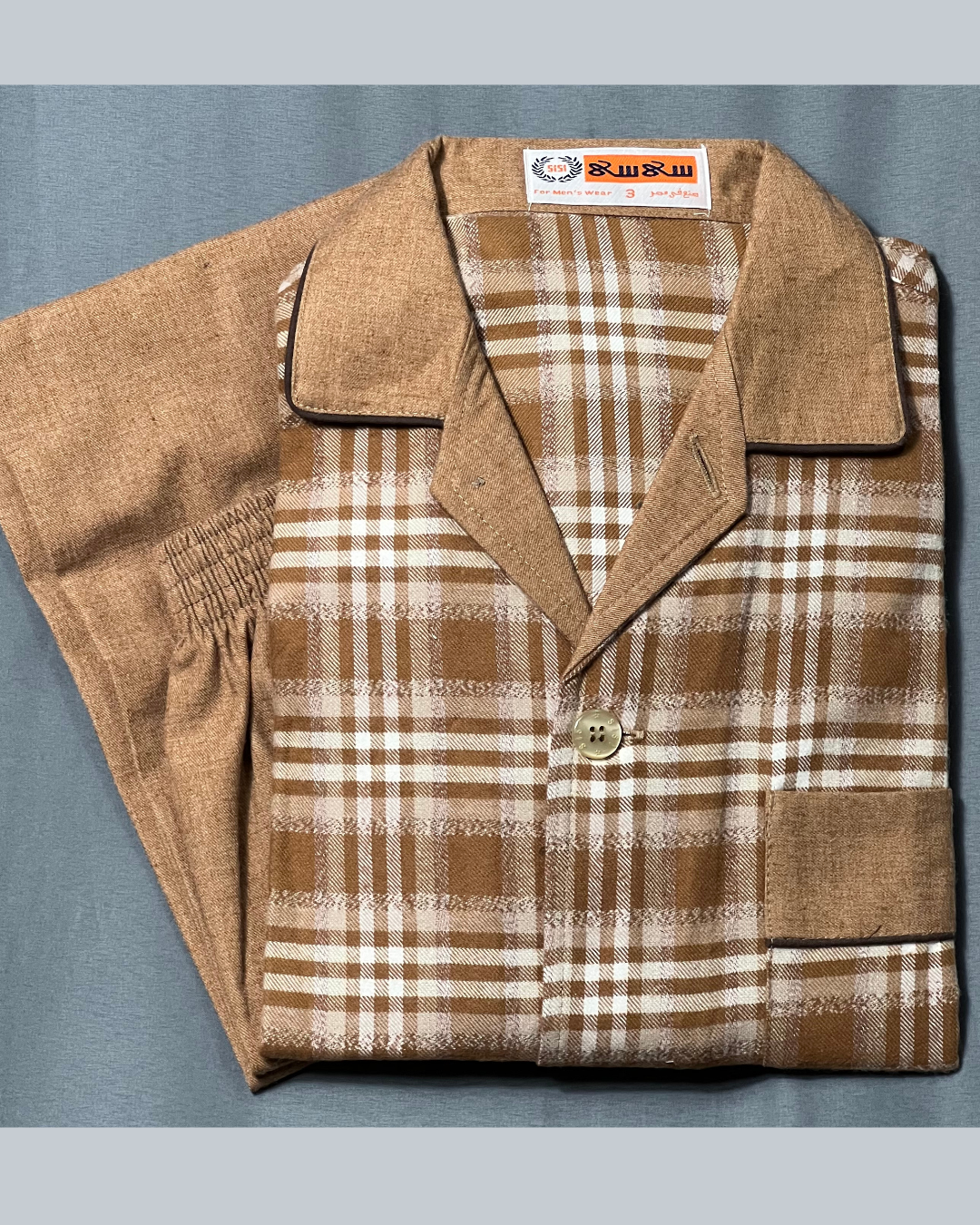 بجامة بيت شتائية كلاسيك فلانيل MODEL:3838 لون بيج