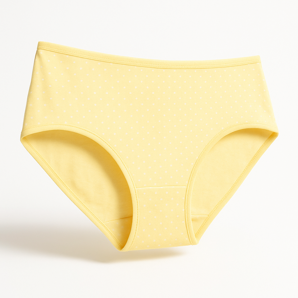 كل قطعة تتميز بألوان ونقشات ناعمة وأنثوية — أصفر بنقط صغيرة، كحلي بنقشة لطيفة، وقطعة بيضاء بنقشة موزعة منتظمة كما هو ظاهر بالصورة.