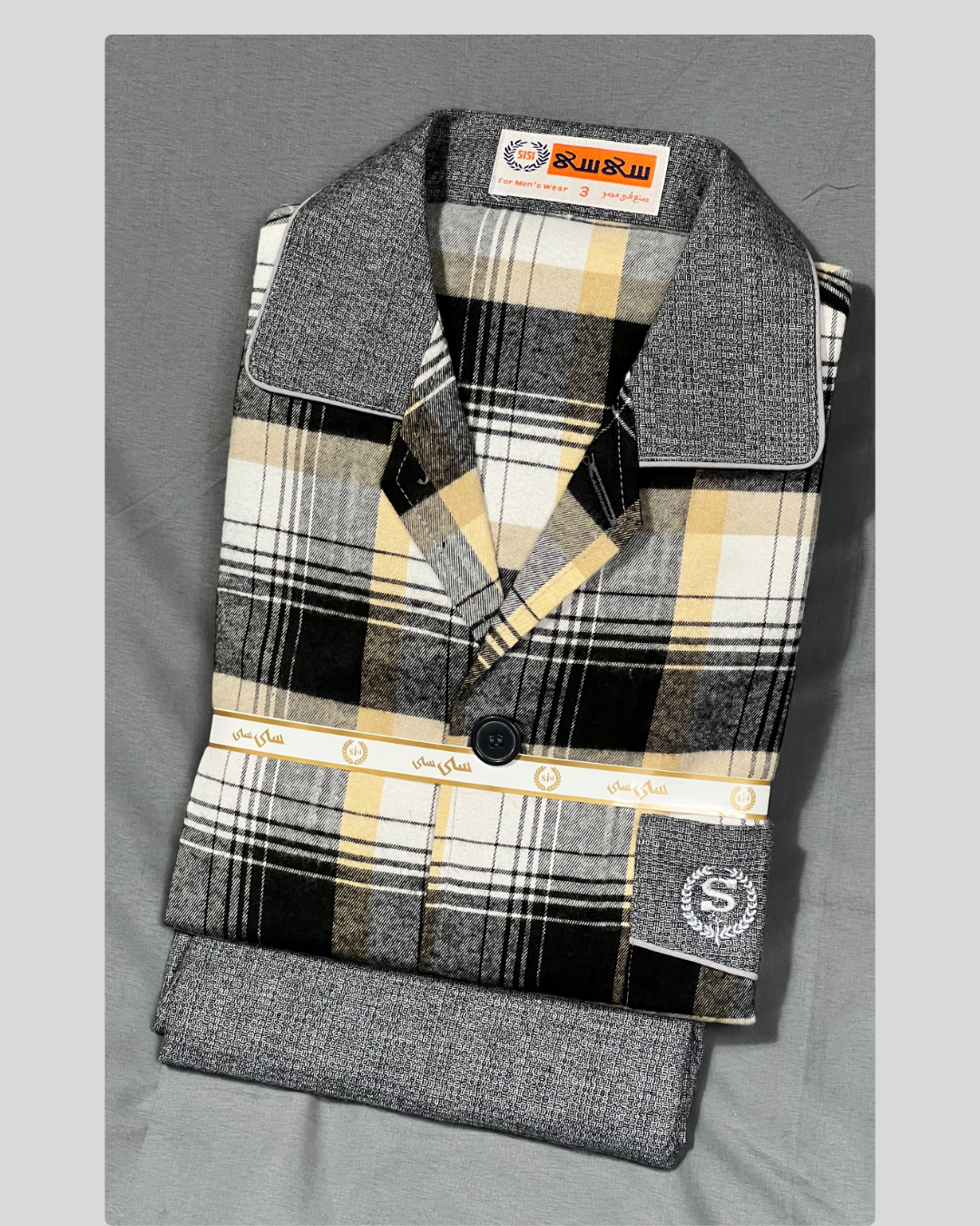 دلّل نفسك براحة الشتاء مع هذه البجامة الرجالية الفاخرة المصنوعة من قماش فلانيل عالي الجودة، المعروف بنعومته ودفئه ومتانته.