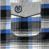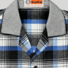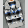 تصميم القميص يأتي بنقشة كاروهات أنيقة تجمع بين الأسود والرمادي والازرق، بينما يأتي البنطال بلون بيج جكار يمنح توازناً رائعاً مع القميص.