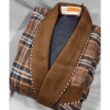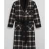 روب رجالي شتوي فاخر من صوف ثقيل، منسوج بطبقتين: طبقة داخلية سادة دافئة، وطبقة خارجية كاروهات كلاسيكية. تصميم أنيق مع ياخة عريضة وجيوب عملية وخياطة متينة تمنح أعلى درجات الدفء والراحة في ليالي الشتاء الباردة.