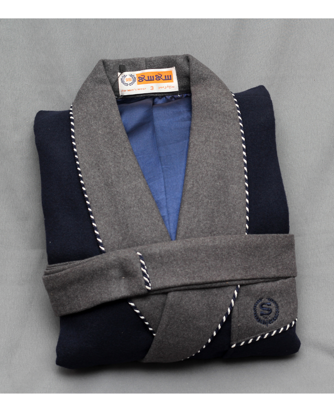 روب رجالي شتوي فاخر من الصوف الثقيل، تصميم أنيق مع ياخة عريضة وجيوب عملية وخياطة متينة تمنح أعلى درجات الدفء والراحة في ليالي الشتاء الباردة.