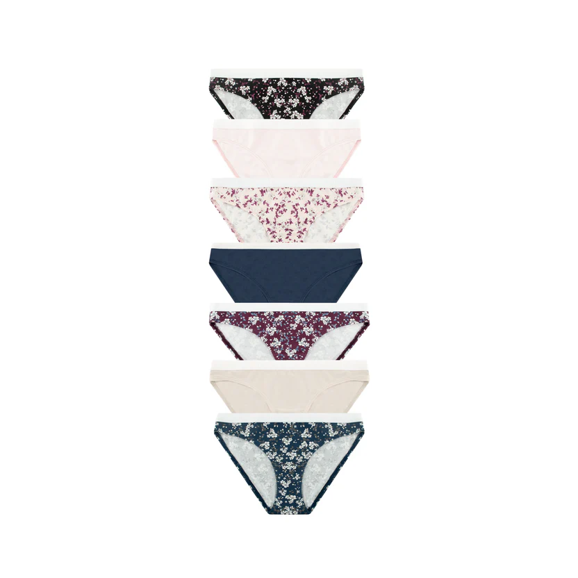 باكيت مكون من 7 قطع ملابس داخلية نسائية موديل Bikini Slip من خامة قطنية ناعمة جداً ومريحة للاستخدام اليومي. مرونة مثالية، خصر ثابت، وألوان هادئة تناسب كل يوم. تصميم عملي يدوم طويلاً ويمنح إحساس خفيف وراحة طوال اليوم. مصنوع من القطن الطبيعي 100% مع نسبة من الليكرا ليعطي مرونة أكثر في الحركة. يمنع تكون البكتريا والفطريات. بفضل نسيج القطن الطبيعي المصري عالي الجودة.